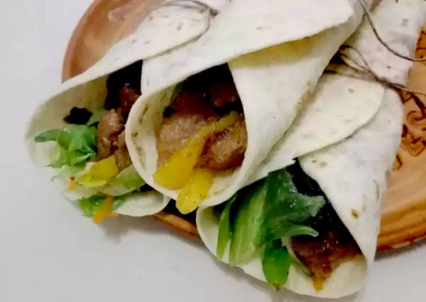 - Calentar las tortillas de trigo o maíz en el horno o en una sartén sin materia grasa. Rellenar cada tortilla con ensalada, por encima láminas de cordero y pimiento, terminando con unas cucharaditas de chutney y cilantro picado por encima.