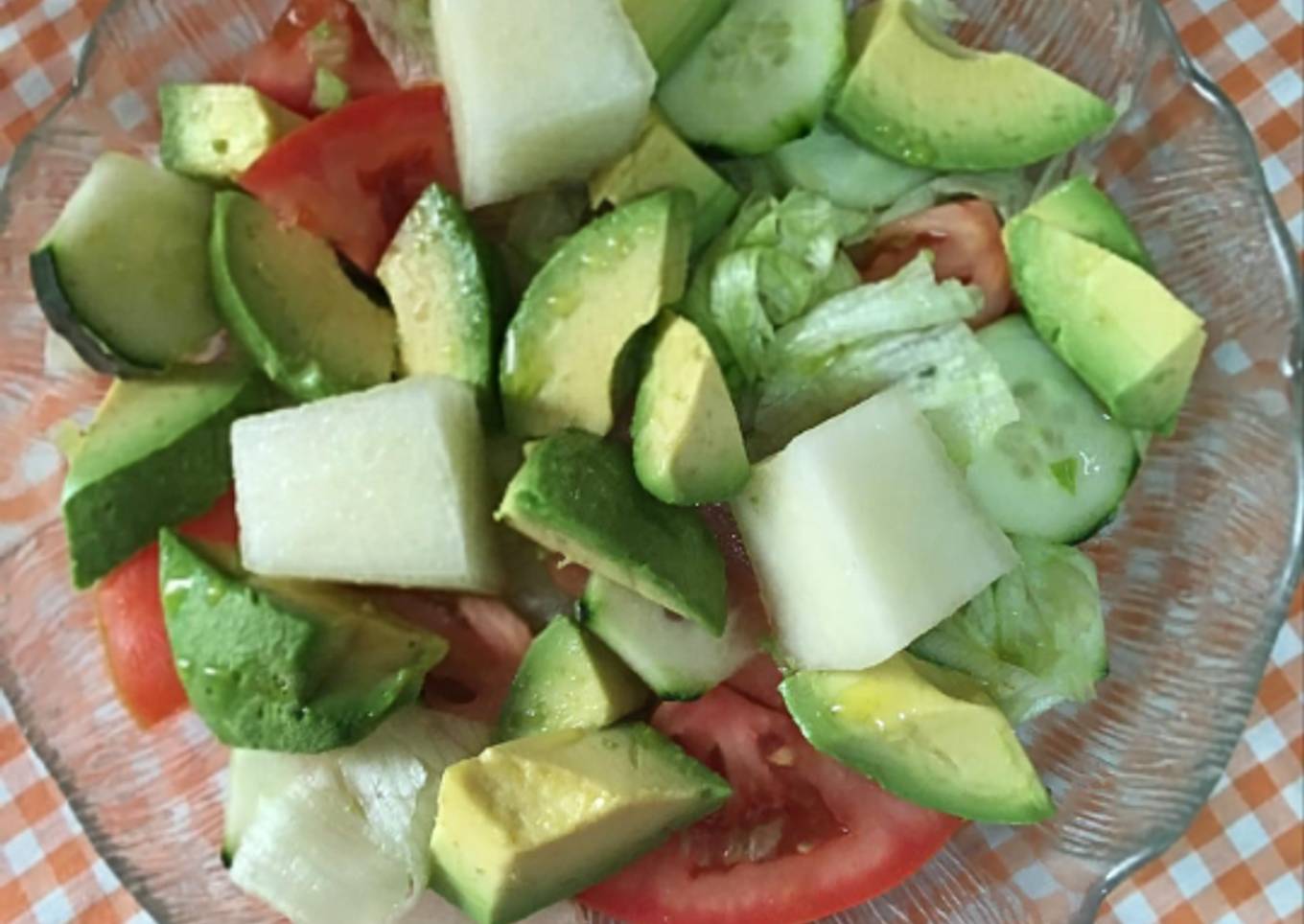 - Hacer una ensalada con tomates, cebolla, manzana, pepino y sal al gusto