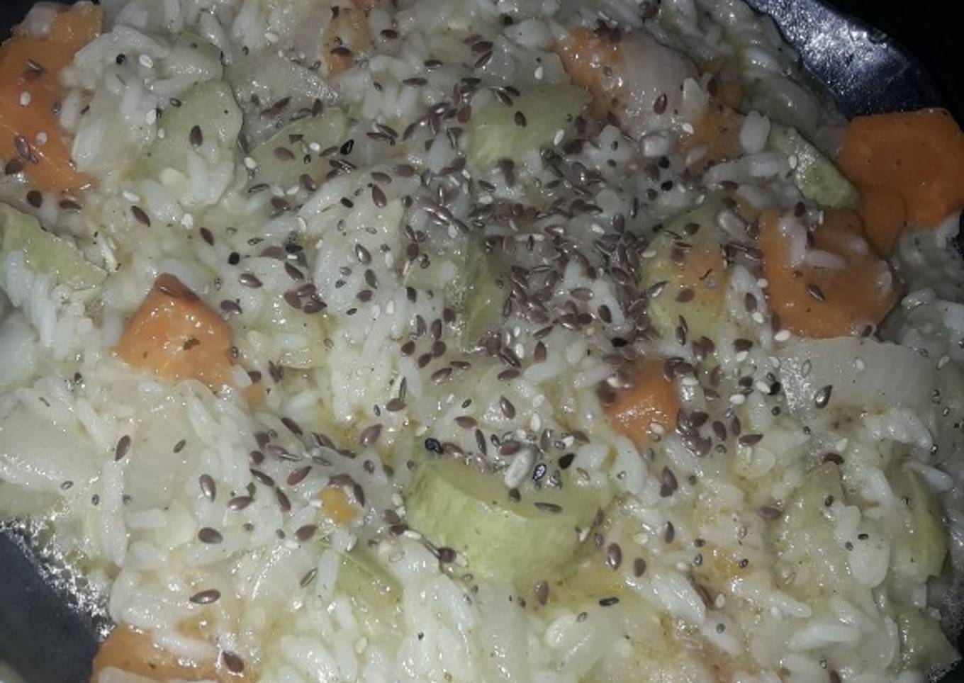 - Cuando el arroz está cocido y el agua desapareció, ya está! En el plato pueden sumarse un mix de semillas anteriormente en remojo o no, queso, lo que sea a gusto.