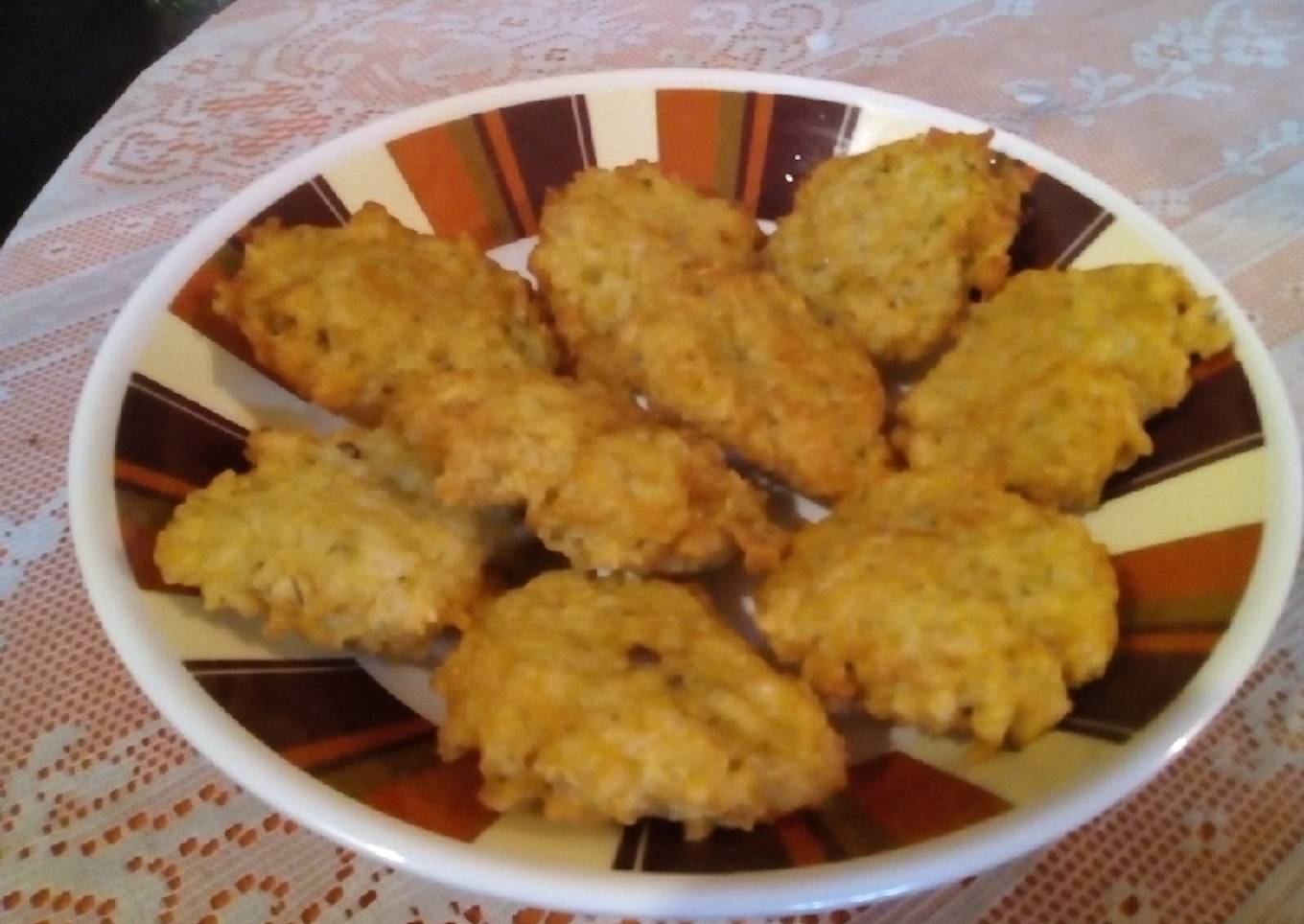 - Luego de unir todo agarramos una bolita del preparado y en la mano le damos la forma como si fuéramos a hacer Patys pero más pequeños. Vamos soltando en la sartén con aceite bien caliente (buena cantidad como si fuéramos a hacer milanesas así quedan bien cubiertas)