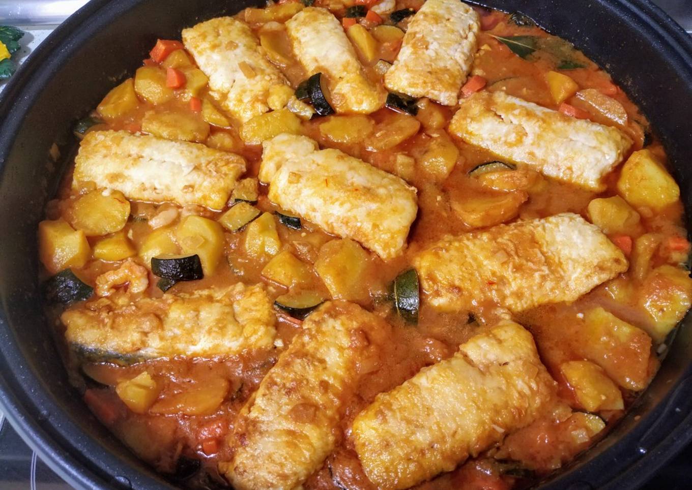 Hey everyone, hope you're having an amazing day today. Today, I'm gonna show you how to make a distinctive dish, Lomos de merluza en salsa con verduras y patatas. It is one of my favorites food recipes. This time, I am going to make it a little bit tasty. This will be really delicious.